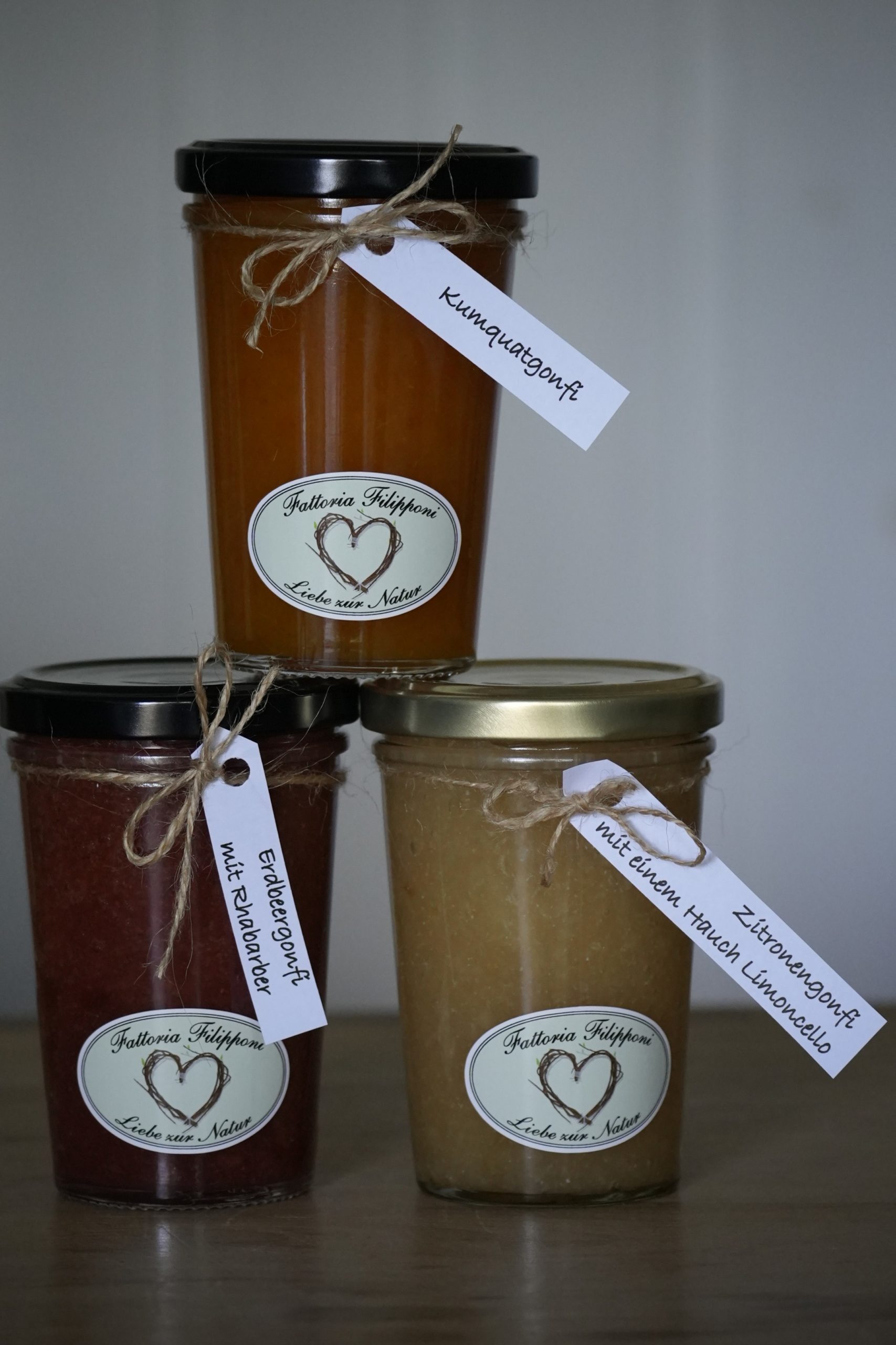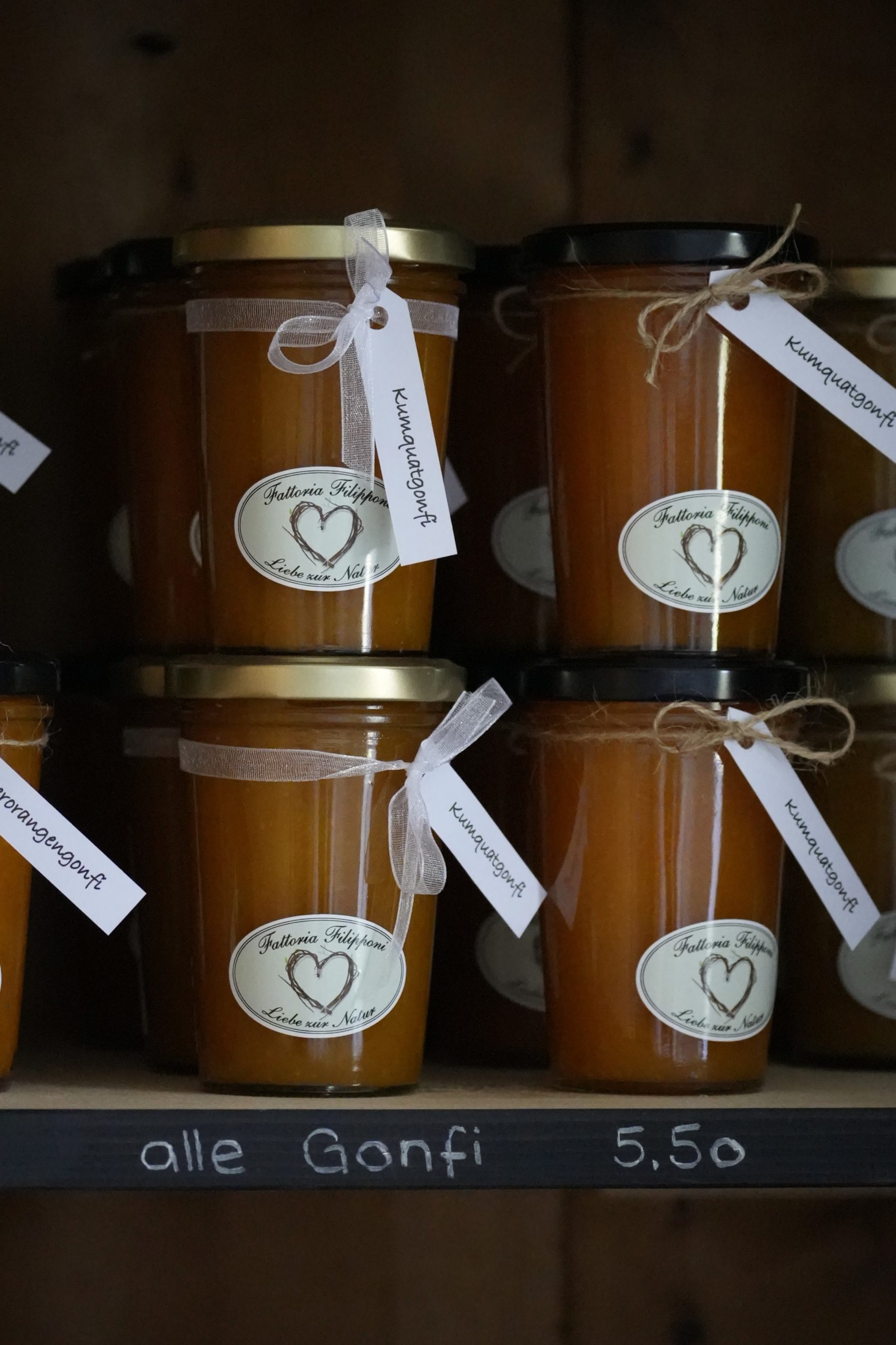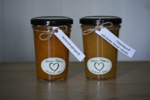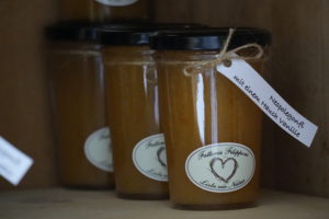 Saisonale Konfitüren und Sirupe sind im Hofladen ebenfalls erhältlich. Die saisonalen Früchte stammen meist aus eigener Anpflanzung. Ansonsten beziehen wir sie aus der Region. Dabei achten wir auf den Anbau und bevorzugen Bioprodukte. Wenn die Früchte reif genug sind, werden sie zur Herstellung von Konfitüre oder Sirup verwendet. Durch die Abwechslung, die uns die Natur in den verschiedenen Monaten schenkt, entsteht eine große Vielfalt an Produkten. Für unsere Konfitüren und Sirupe verwenden wir ausschließlich reife Früchte, Biozucker und Bio-Apfelpektin.
