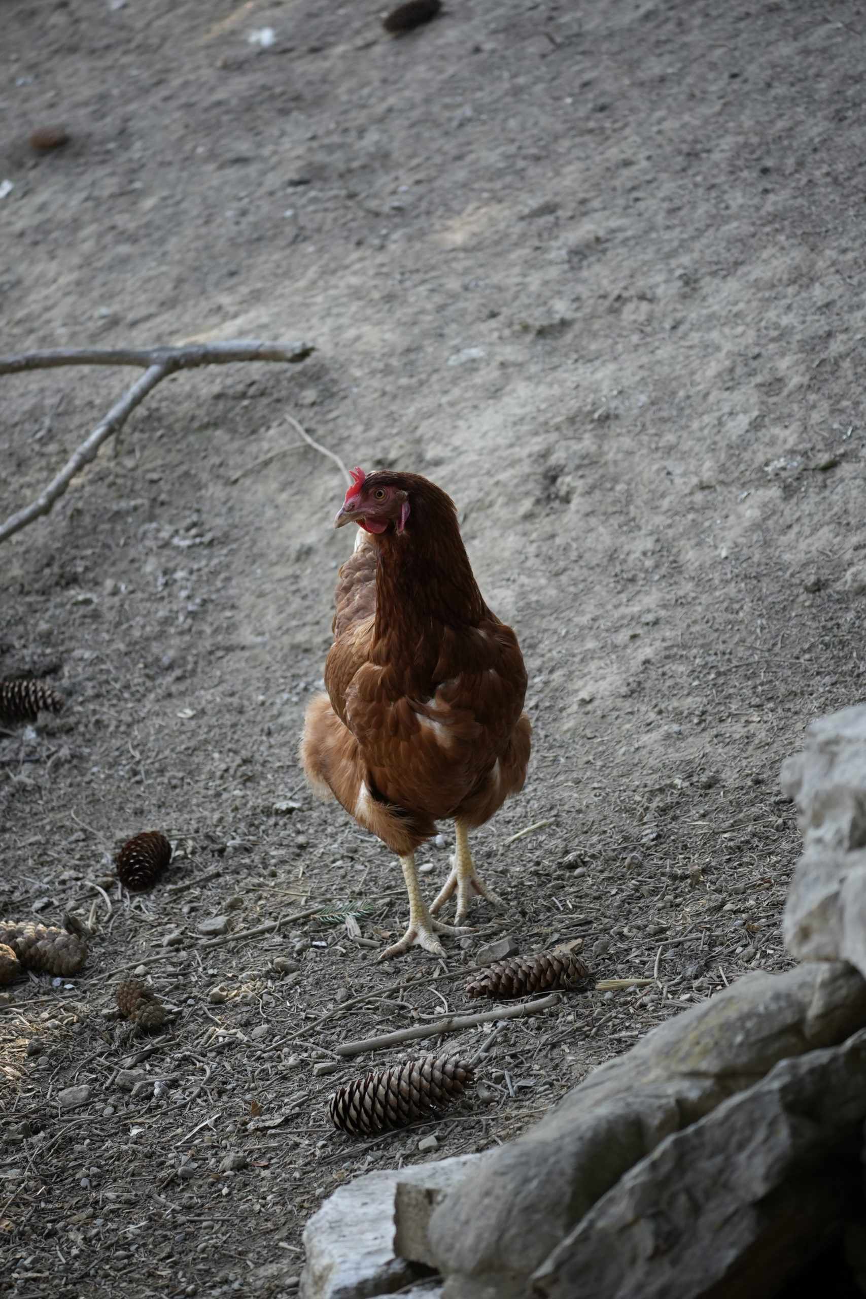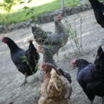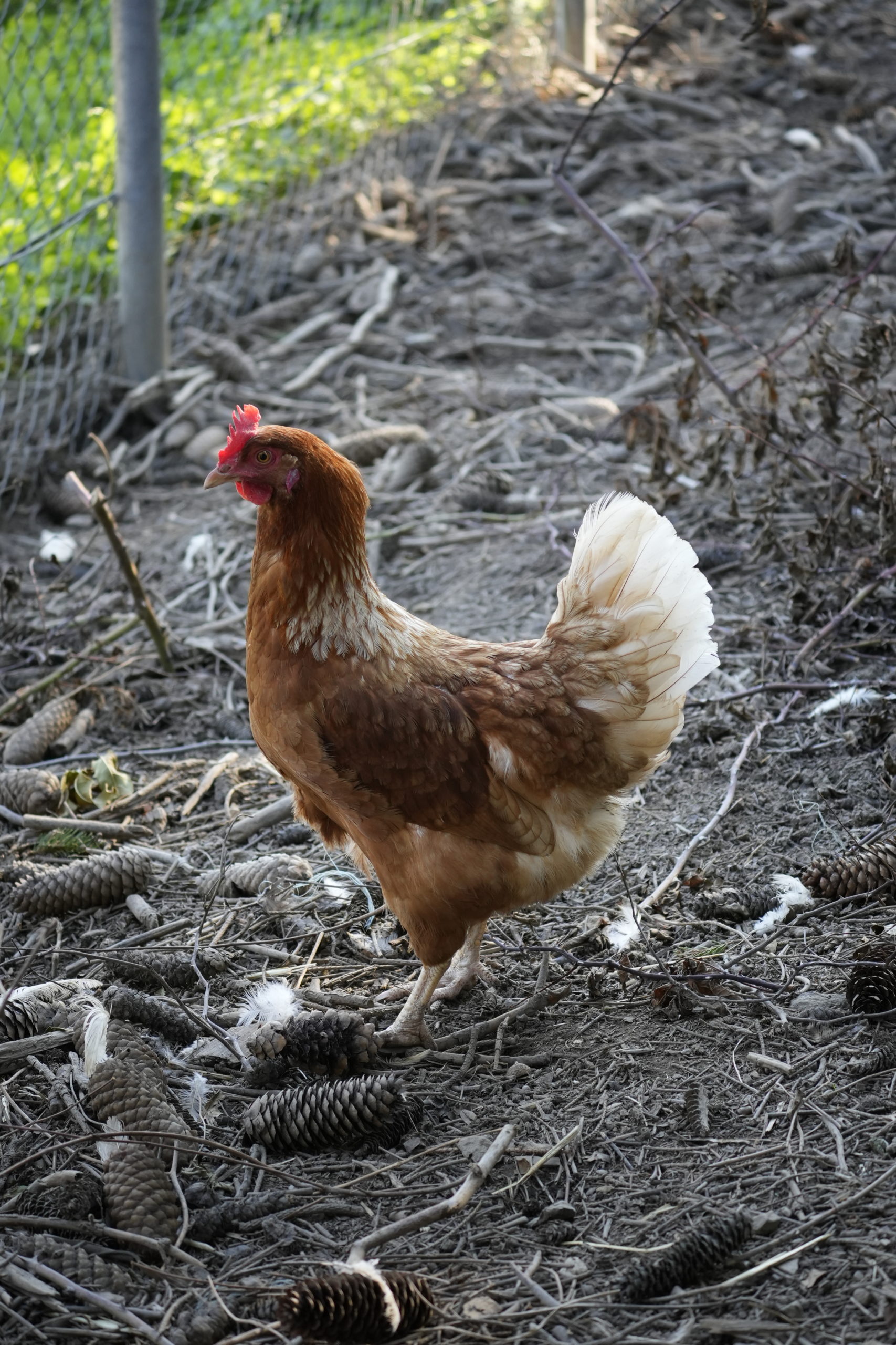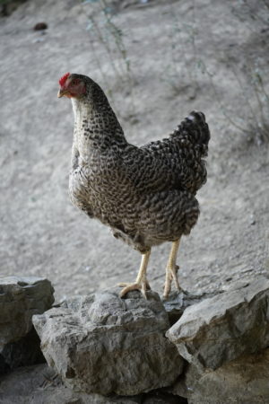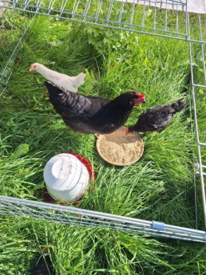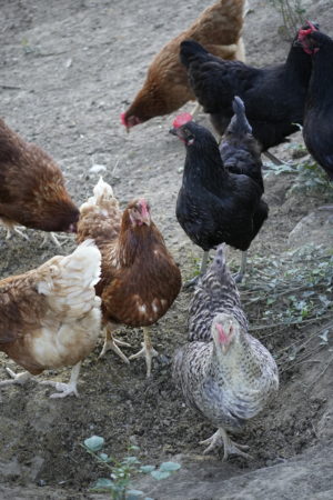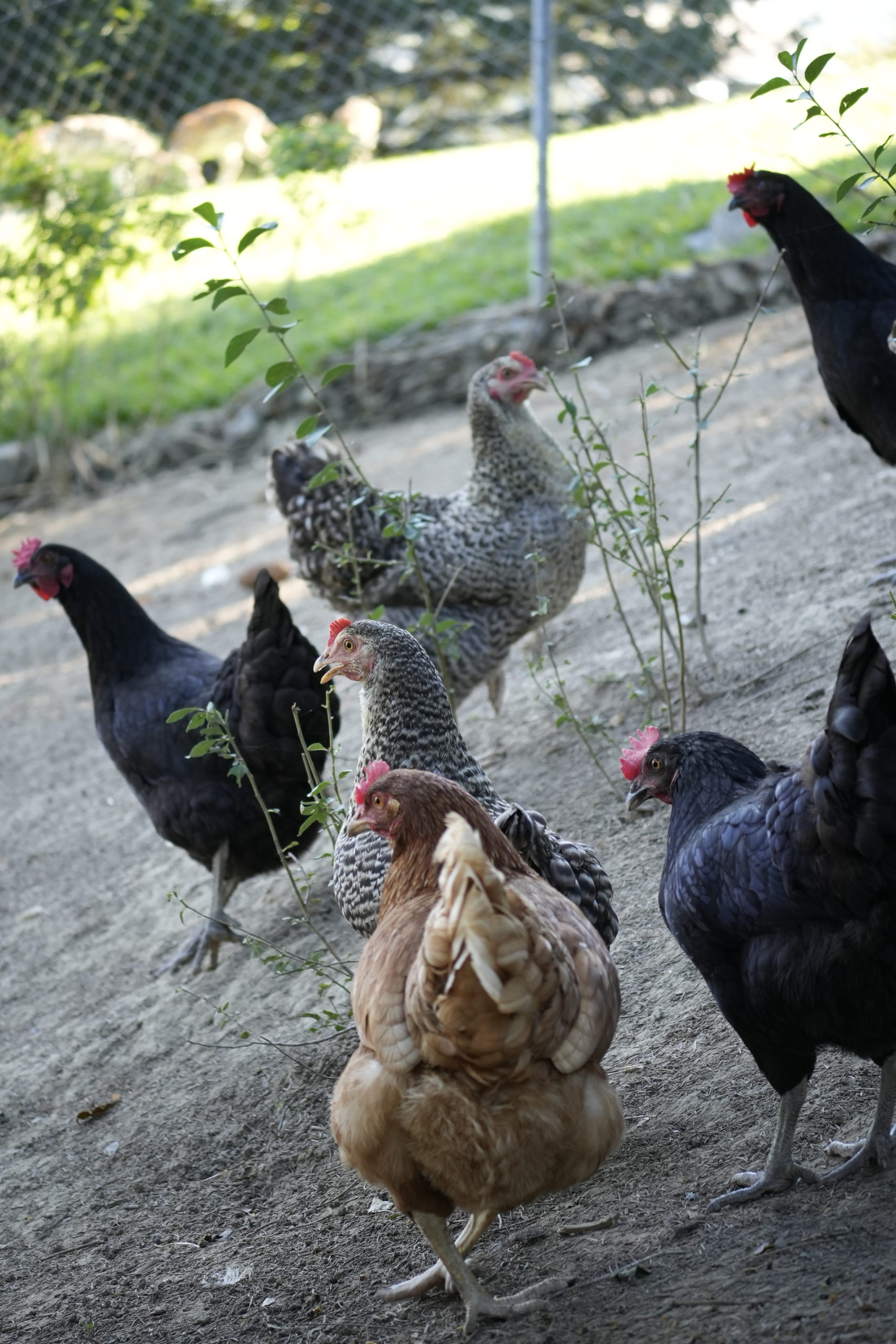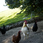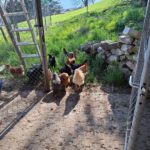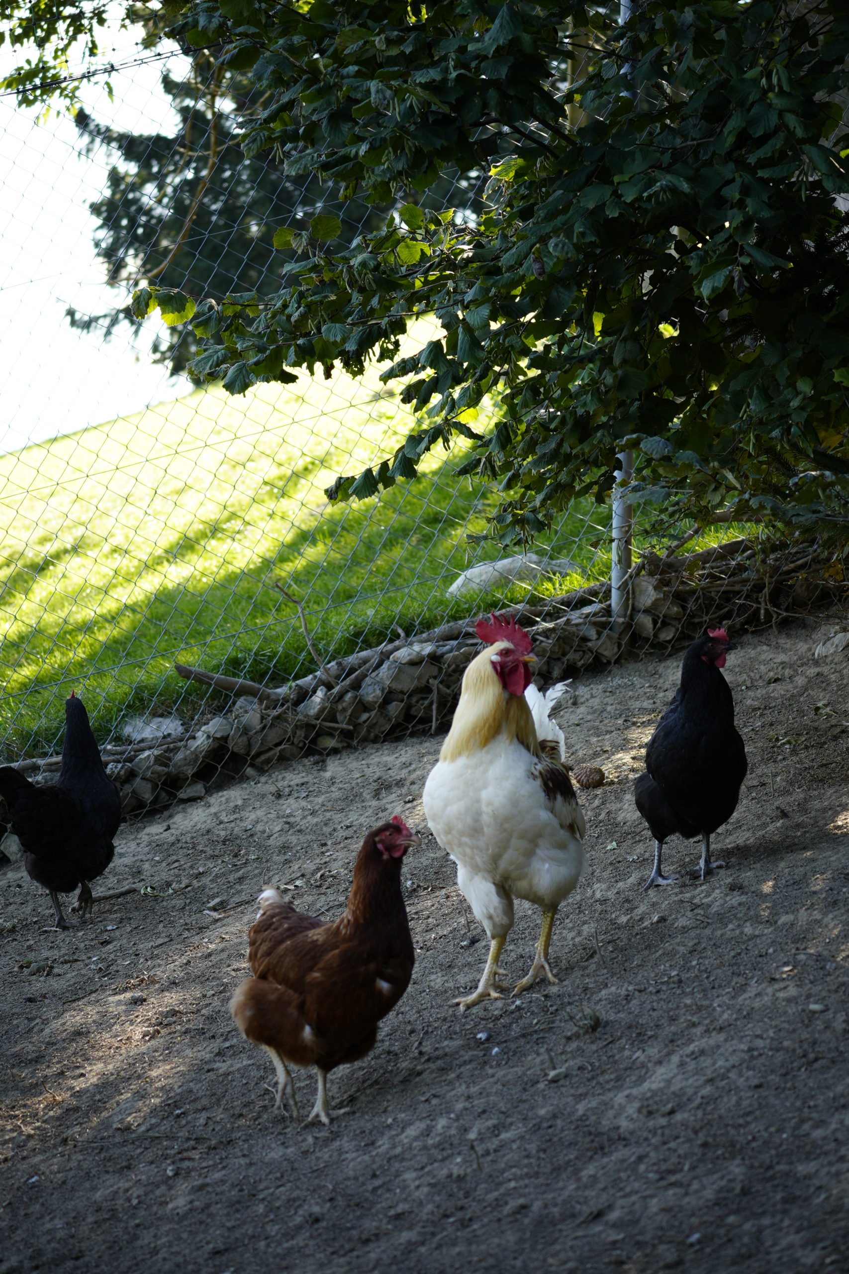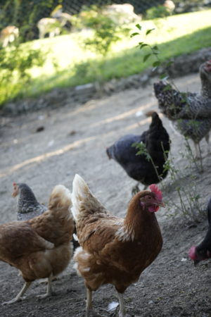 Unsere Hühner leben bei uns in Freilandhaltung. Mit einer Hühnerschar von zwölf Hennen, hat der Güggel einiges zu regeln. Den täglichen Auslauf ins Freie geniessen sie sehr und haben stets etwas zu picken und zu scharren. Neben köstlichen Würmern lieben sie besonders die „Chuiresta“. Wenn ich mit dem Körbchen kommt, rennen alle freudig herbei. Zusätzlich füttern wir ein 100 % Biofutter, das sie täglich erhalten. Die frischen Eier legen die Hennen in Legekästen, die im Stall verteilt sind. Ein- bis zweimal im Jahr kann es vorkommen, dass ein Huhn gluckt und ihre Eier selbst ausbrütet. Das freut uns natürlich jeweils sehr. Da das Glucken bei Hühnern immer seltener wird, haben wir einen Brutkasten, in dem wir vorbebrütete Eier erfolgreich fertig ausbrüten können. Leider haben wir über die Jahre einige Hühner an unseren lieben Nachbarn, den Fuchs, verloren. Seit Anfang Februar 2025 ist unser Hühnerauslauf jedoch fuchssicher und wir hoffen, in Zukunft keine solchen Erfahrungen mehr machen zu müssen.